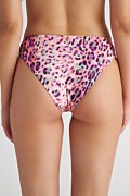 Leopard printed bikini slip adorned with a metallic circular accessories on the sides. Features moderate back coverage. Combine it with the matching bikini top 25801482D for a complete look.