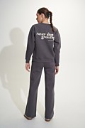 Printed cotton oversized sweatshirt with long sleeves and scoop neckline. Inner soft fleece fabric and rib banded cuffs in both waist and sleeves. Relaxed fit. Combine it with the pants 24831251 for a perfect look. Suitable to wear all day and night. Model wears size S: Height: 1,76cm, Bust: 85cm, Waist: 61cm, Hips: 91cm.