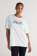 Printed cotton oversized t-shirt with a scoop neckline. Loose fit. Suitable for both casual outfits and special occasions. Model wears size S: Height: 1,75cm, Bust: 82cm, Waist: 65cm, Hips: 96cm.