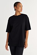 Printed cotton oversized t-shirt with a scoop neckline. Loose fit. Suitable for both casual outfits and special occasions. Model wears size S: Height: 1,75cm, Bust: 82cm, Waist: 65cm, Hips: 96cm.