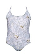 Girls onepiece swimsuit in allover prints. Crossed back. Adjustable straps. Full coverage botton.