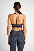 Printed sports bra with thin straps. Wide band with a repeating Sugarfree logo on the elastic band that hugs the body, deep 'V' neckline and removable pads. Slim fit. Very cropped length. Combine it with the leggings 24845024 for a perfect look. Model wears size S: Height: 1,79cm, Bust: 84cm, Waist: 61cm, Hips: 91cm.