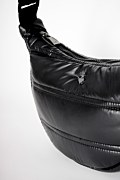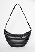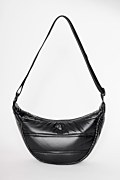 Metallic quilted monochrome shoulder bag, in a chic half-moon shape. Features a Sugarfree logo on the front, a single main compartment and internal pockets. Zip closure at the top. Dimensions: Length 10 x Width 35 x Height 18 cm.