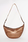 Metallic quilted monochrome shoulder bag, in a chic half-moon shape. Features a Sugarfree logo on the front, a single main compartment and internal pockets. Zip closure at the top. Dimensions: Length 10 x Width 35 x Height 18 cm.