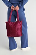 Quilted monochrome shopper-style bag. Features a Sugarfree logo on the front, a single main compartment with an inner pocket, and a top zip closure. Dimensions: Length 13 x Width 39 x Height 32 cm.