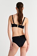 Sugarfree is committed to our ongoing initiative for sustainibility. This high quality swimsuit is made from regenerated polyamide fibres. We are proudy committed initiative for sustainability. By wearing this unique swimsuit, you become part of the enviromental protection chain. The high waist bikini bottom will show off your flat belly and your silhouette will look gorgeous. Features a moderate back coverage. The monochrome style allows you to mix and match it with many bikini tops. Material: This garment is made with ECONYL® regenerated nylon which is created from rescued recyclable waste, has high resistance to chlorine and to contact with sunscreens and oils and is unlimitedly recyclable.Its composition offers excellent coverage with great abrasion resistance (78%pa-22%ea).