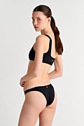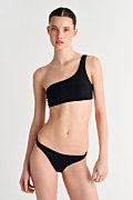 Sugarfree is committed to our ongoing initiative for sustainibility. This high quality swimsuit is made from regenerated polyamide fibres. We are proudy committed initiative for sustainability. By wearing this unique swimsuit, you become part of the enviromental protection chain. This one-shoulder bikini crop top has no clasp at the back. The monochrome style allows you to mix and match it with many bikini bottoms. Material: This garment is made with ECONYL® regenerated nylon which is created from rescued recyclable waste, has high resistance to chlorine and to contact with sunscreens and oils and is unlimitedly recyclable.Its composition offers excellent coverage with great abrasion resistance (78%pa-22%ea).