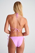Sugarfree is committed to our ongoing initiative for sustainibility. This high quality swimsuit is made from regenerated polyamide fibres. We are proudy committed initiative for sustainability. By wearing this unique swimsuit, you become part of the enviromental protection chain. This bikini bottom ties at sides so you can adjust it wherever your silhouette shows perfect. It has a moderate back coverage and a low rise. The monochrome style allows you to mix and match it with many bikini tops. Material: This garment is made with ECONYL® regenerated nylon which is created from rescued recyclable waste, has high resistance to chlorine and to contact with sunscreens and oils and is unlimitedly recyclable.Its composition offers excellent coverage with great abrasion resistance (78%pa-22%ea).
