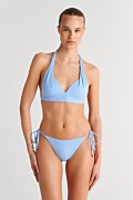 Sugarfree is committed to our ongoing initiative for sustainibility. This high quality swimsuit is made from regenerated polyamide fibres. We are proudy committed initiative for sustainability. By wearing this unique swimsuit, you become part of the enviromental protection chain. This bikini bottom ties at sides so you can adjust it wherever your silhouette shows perfect. It has a moderate back coverage and a low rise. The monochrome style allows you to mix and match it with many bikini tops. Material: This garment is made with ECONYL® regenerated nylon which is created from rescued recyclable waste, has high resistance to chlorine and to contact with sunscreens and oils and is unlimitedly recyclable. Its composition offers excellent coverage with great abrasion resistance (78%pa-22%ea).
