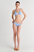 Sugarfree is committed to our ongoing initiative for sustainibility. This high quality swimsuit is made from regenerated polyamide fibres. We are proudy committed initiative for sustainability. By wearing this unique swimsuit, you become part of the enviromental protection chain. This triangle bikini top has a light padding with removable pads and adjustable ties at the neck and back for a custom fit. The monochrome style allows you to mix and match it with many bikini bottoms. Material: This garment is made with ECONYL® regenerated nylon which is created from rescued recyclable waste, has high resistance to chlorine and to contact with sunscreens and oils and is unlimitedly recyclable. Its composition offers excellent coverage with great abrasion resistance (78%pa-22%ea).