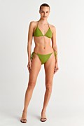 Sugarfree is committed to our ongoing initiative for sustainibility. This high quality swimsuit is made from regenerated polyamide fibres. We are proudy committed initiative for sustainability. By wearing this unique swimsuit, you become part of the enviromental protection chain. This triangle bikini top has a light padding with removable pads and adjustable ties at the neck and back for a custom fit. The monochrome style allows you to mix and match it with many bikini bottoms. Material: This garment is made with ECONYL® regenerated nylon which is created from rescued recyclable waste, has high resistance to chlorine and to contact with sunscreens and oils and is unlimitedly recyclable. Its composition offers excellent coverage with great abrasion resistance (78%pa-22%ea).
