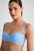 Sugarfree is committed to our ongoing initiative for sustainibility. This high quality swimsuit is made from regenerated polyamide fibres. We are proudy commited initiative for sustainability. By wearing this unique swimsuit, you become part of the enviromental protection chain. This strapless bikini top with removable adjustable straps is featured with underwired support and clasp fastening at back. It is designed for cup D. The monochrome style allows you to mix and match it with many bikini bottoms. Material: This garment is made with ECONYL® regenerated nylon which is created from rescued recyclable waste, has high resistance to chlorine and to contact with sunscreens and oils and is unlimitedly recyclable. Its composition offers excellent coverage with great abrasion resistance (78%pa-22%ea).