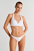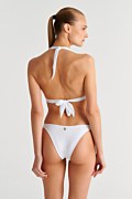 Sugarfree is committed to our ongoing initiative for sustainibility. This high quality swimsuit is made from regenerated polyamide fibres. We are proudy committed initiative for sustainability. By wearing this unique swimsuit, you become part of the enviromental protection chain. This underwired triangle bikini top ties at neck and back. The monochrome style allows you to mix and match it with many bikini bottoms. Material: This garment is made with ECONYL® regenerated nylon which is created from rescued recyclable waste, has high resistance to chlorine and to contact with sunscreens and oils and is unlimitedly recyclable. Its composition offers excellent coverage with great abrasion resistance (78%pa-22%ea).