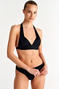 Sugarfree is committed to our ongoing initiative for sustainibility. This high quality swimsuit is made from regenerated polyamide fibres. We are proudy committed initiative for sustainability. By wearing this unique swimsuit, you become part of the enviromental protection chain. This underwired triangle bikini top ties at neck and back. The monochrome style allows you to mix and match it with many bikini bottoms. Material: This garment is made with ECONYL® regenerated nylon which is created from rescued recyclable waste, has high resistance to chlorine and to contact with sunscreens and oils and is unlimitedly recyclable. Its composition offers excellent coverage with great abrasion resistance (78%pa-22%ea).