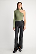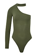 Fitted, one-shoulder bodysuit in ribbed fabric. Turtleneck with an asymmetric neckline and one long sleeve. Concealed press-studs at the crotch.