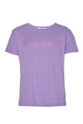 Cotton t-shirt for girls adorned with colorful strass embellishments at the front side. Scoop neckline and short sleeves. Regular fit. Model wears size 8, height: 1,30cm.