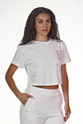 Μonochrome cropped cotton short-sleeved top by KENDALL + KYLIE. Scoop neckline and logo design on the side. Regular fit. Combine it with all your casual outfits to wear it from day to night!