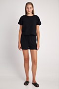 High waisted monochrome linen shorts in wide leg. Banded drawstring waist for a firm fit and side in-seam pockets. Loose fit. Perfectly combined with the top 24812151. Model wears size S: Height: 1,81cm, Bust: 88cm, Waist: 62cm, Hips: 91cm.
