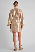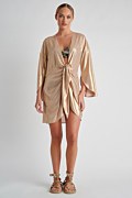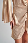 Monochrome mini wrap dress in shiny look. Τies at front, 'V' neckline and 3/4 wide sleeves. Regular fit and short length. Perfect dress for your everyday summer appearances!