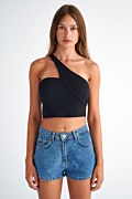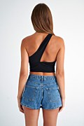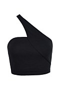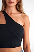 Monochrome fitted one shoulder elastic rib crop top. Slim fit.