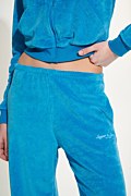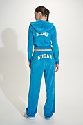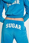 The high-waisted, long, velour Sugarfree pants in a wide-leg fit will become your favorite piece in your wardrobe, no matter what your style is! Its high-waisted design particularly flatters the silhouette, offering both comfort and style. Features an elasticated waistband for a firm fit, embroidered print on the cuff, side pockets, and a "Sugar" logo print detail on the back in white color for contrast. Loose fit. Combine it with the jacket 25813035 for a perfect look. Suitable to wear all day and night. Model wears size S: Height: 1,76cm, Bust: 85cm, Waist: 61cm, Hips: 91cm.
