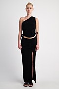Monochrome terry long skirt with adjustable side drawstring on one leg that create a draped design. High slit at the side. Slim fit. Combine it with the top 24812094 for a perfect outfit. Model wears size S: Height: 1,72cm, Bust: 83cm, Waist: 59cm, Hips: 90cm.