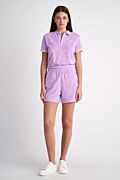 High waisted monochrome terry shorts in wide leg. Elastic waistband for a firm fit and side pockets. Loose fit. Combine it with the top 24812042 and you will impress with your perfect look.