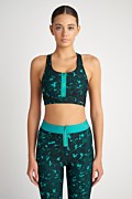 Printed sports bra in slim fit with athletic back. Front zipper closure. Cut-out at the back side. Combine it with the leggings 23865032 for a perfect style. Model wears size S: Height: 1,79cm, Bust: 84cm, Waist: 61cm, Hips: 91cm.