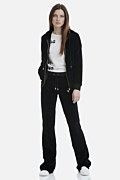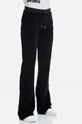 Comfort with style! The Sugarfree iconic velour pants in basic colors. Low rise and slightly flared fit. Patch pockets on the front, snap-flap pockets on back, long length and banded drawstring waist. Logo details at the front drawstring. Combine it with the jacket 19833000UZ to complete your perfect look. Suitable from day to night. Model wears size S.