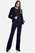 Comfort with style! The Sugarfree iconic velour pants in basic colors. Low rise and slightly flared fit. Patch pockets on the front, snap-flap pockets on back, long length and banded drawstring waist. Logo details at the front drawstring. Combine it with the jacket 19833000UZ to complete your perfect look. Suitable from day to night. Model wears size S.