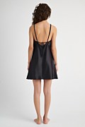 Mini satin nightdress in monochrome style. Thin adjustable shoulder straps and a V-shaped neckline. Opening detail at the back side. Relaxed fit.