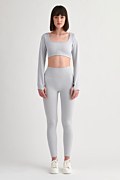 High-waisted seamless sports leggings in monochrome style. It has a wide, elastic basque to show your silhouette. Slim fit. This leggings is designed to make you feel comfortable during your workout and to offer you more flexibility. Combine it with the crop top 24848064 for a more complete and stylish athleisure look that will turn heads wherever you go. Model wears size S: Height: 1,77cm, Bust: 83cm, Waist: 60cm, Hips: 89cm. *We recommend opting for a size up because of slim fit.