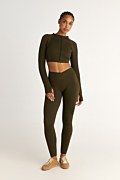 High-waisted seamless sports leggings in monochrome style. The high waist design not only provides added coverage and support but also helps to accentuate your natural curves for a flattering silhouette. Featuring a wide elastic band that hugs your body snugly, offering a firm yet comfortable fit that stays in place no matter how intense your movements are. Wrapover detail at the elastic basque. Suitable for your daily workouts. Combine it with the sports jacket 25863029 for a perfect look. Model wears size S: Height: 1,79cm, Bust: 80cm, Waist: 62cm, Hips: 92cm.