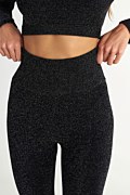 High-waisted seamless sports leggings featuring gold metallic thread for a subtle shimmer. It has a wide, elastic basque to show your silhouette. Slim fit. This leggings is designed to make you feel comfortable during your workout and to offer you more flexibility. Combine it with the crop top 25868031 for a more complete and stylish athleisure look that will turn heads wherever you go. Model wears size S: Height: 1,75cm, Bust: 79cm, Waist: 60cm, Hips: 90cm.