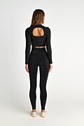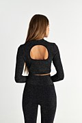 Elevate your athleisure look with this seamless sports crop top featuring gold metallic thread for a subtle shimmer. Scoop neckline, long sleeves and cut-out detail at the back. Made from highly elastic fabric. Suitable for workouts as well as everyday wear. Slim fit. Complete the look with the leggings 25865031. Model wears size S: Height: 1,75cm, Bust: 79cm, Waist: 60cm, Hips: 90cm.