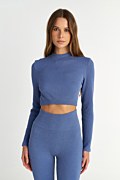 Elevate your athleisure look with this seamless sports crop top featuring gold metallic thread for a subtle shimmer. Scoop neckline, long sleeves and cut-out detail at the back. Made from highly elastic fabric. Suitable for workouts as well as everyday wear. Slim fit. Complete the look with the leggings 25865031. Model wears size S: Height: 1,75cm, Bust: 79cm, Waist: 60cm, Hips: 90cm.