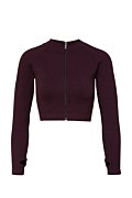 Seamless sports cropped jacket with embossed feeling in monochrome style. Features long sleeves with thumbhole cuffs that give a warm feeling to the hands and a firm fit of the sleeves. Front zipper closure. It is quite elastic and suitable for fitness and not only. Comfortable supportive fit. It fits perfectly with the leggings 25865029 or with any monochrome leggings. Model wears size S: Height: 1,79cm, Bust: 80cm, Waist: 62cm, Hips: 92cm.