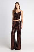 SEQUIN-EMBELLISHED HIGH WAISTED FLARED PANTS
