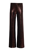 Ηigh-waisted flared pants with allover sequins. The high waist style flatters the silhouette, offering comfort and style. Features a waistband for a firm fit. Unlined. Fitted and flared fit. Relaxed fit. Combine it with the top 25838168 for a complete glam look. Model wears size S/M: Height: 1,74cm, Bust: 86cm, Waist: 66cm, Hips: 89cm.