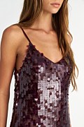 Mini dress with allover sparkling sequins. Features a scoop neckline, thin adjustable shoulder straps, and an inner lining. Slim fit. Suitable for evening outings and parties. Model wears size S: Height: 1,75cm, Bust: 79cm, Waist: 60cm, Hips: 90cm.