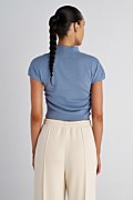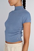 Monochrome knitted top with a high neckline and short sleeves. Features ruched side detailing for a draped effect. Slim fit.
