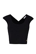 Sleeveless cotton crop top in slim fit. Features a scoop neckline, crossover back and decorative SF logo on the side. Cropped length. Model wears size S: Height: 1,79cm, Bust: 80cm, Waist: 62cm, Hips: 92cm.