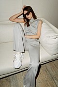 Elevate your casual style with these high waisted, soft light touch pants with front decorative outer seam in flared style. The high waist style particularly flatters the silhouette, offers both comfort and style. Εlasticated waistband for a firm fit, side pockets and iconic Sugarfree logo on the front. Decorative welt pockets at the back side. Combine it with the top 25842009 for a perfect outfit. Model wears size S: Height: 1,75cm, Bust: 81cm, Waist: 67cm, Hips: 89cm.