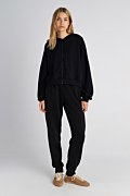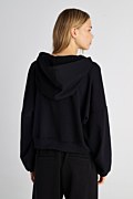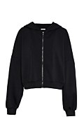 Monochrome soft light touch hooded jacket. Designed with long sleeves and elastic bands in both waist and sleeves. Front zipper closure. Relaxed fit. Model wears size S: Height: 1,79cm, Bust: 84cm, Waist: 60cm, Hips: 90cm.