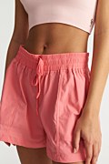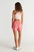 High-waisted sports shorts in monochrome style. Features an elasticated waistband with an adjustable drawstring for a firm fit, side pockets a curved hem and an embossed 'WORK IT OUT' logo at the side. Regular fit. Short length. Elevate your athletic wardrobe with this versatile and stylish addition.