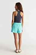 High-waisted sports shorts in monochrome style. Features an elasticated waistband with an adjustable drawstring for a firm fit, side pockets a curved hem and an embossed 'WORK IT OUT' logo at the side. Regular fit. Short length. Elevate your athletic wardrobe with this versatile and stylish addition.