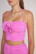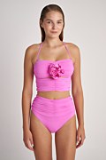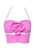STRAPLESS BIKINI CROPPED TOP WITH FLORAL CORSAGE DETAIL