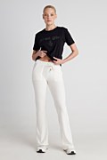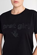 Strass embellished cotton t-shirt with scoop neckline in monochrome style. Regular fit. Combined with all your clothes to wear it all day! Model wears size S: Height: 1,78cm, Bust: 88cm, Waist: 63cm, Hips: 91cm.