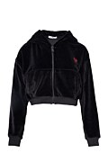 STRASS EMBELLISHED CROPPED VELOUR HOODIE JACKET