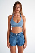 STRASS EMBELLISHED RIBBED HALTERNECK CROP TOP